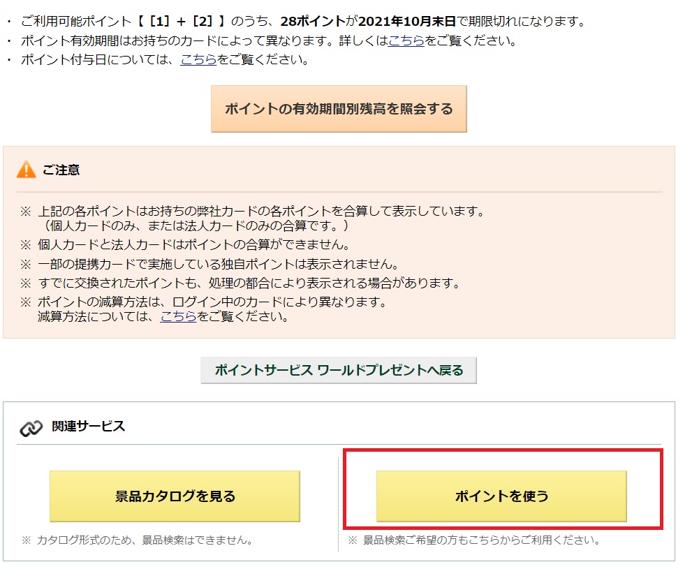 ポイント確認画面の下に、ポイントを使うというボタンがあるので、ここを押します。
