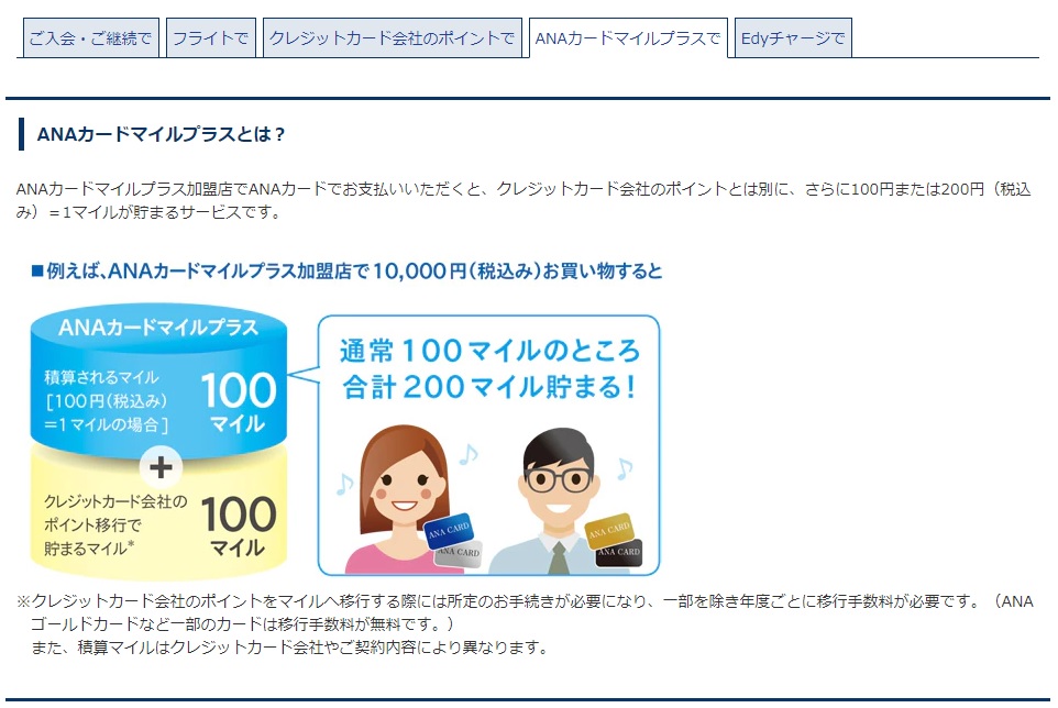 ちょっとサイトの内容が薄くてわかりにくいですよね、前回マツモトキヨシの場合は、レジでANAカードを見せるだけで、200円で1マイルついたり、セブンイレブンではANAカードで決済しないとボーナスマイルがつかないなど、各店舗や、決済手段でも変わるので、それがこの画面でしか説明できてないのはちょっとお役所しごとですね、、担当部門は